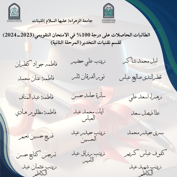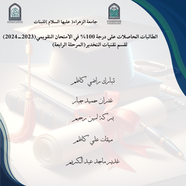 إنجاز استثنائي لطالبات قسم تقنيات التخدير في جامعة الزهراء (عليها السلام) للبنات: تحقيق الدرجة الكاملة في الامتحان التقويمي(2023-2024)